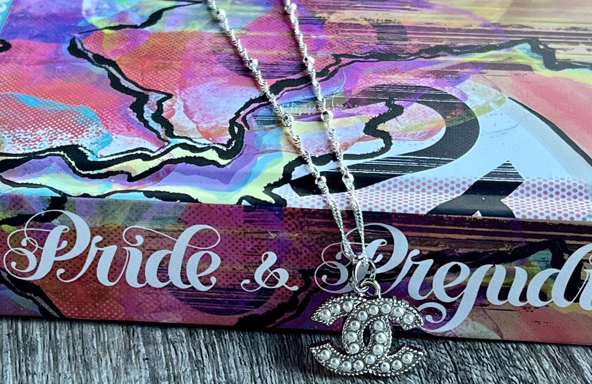 Authentic Repurposed Designer Chanel Button Necklace. Miabella Italian 925 Sterling Silver Bead CHain.