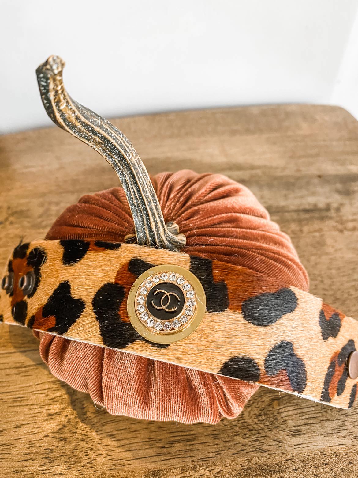 Animal Print Cowhide Leather Bracelet with Authentic Crystal Chanel button