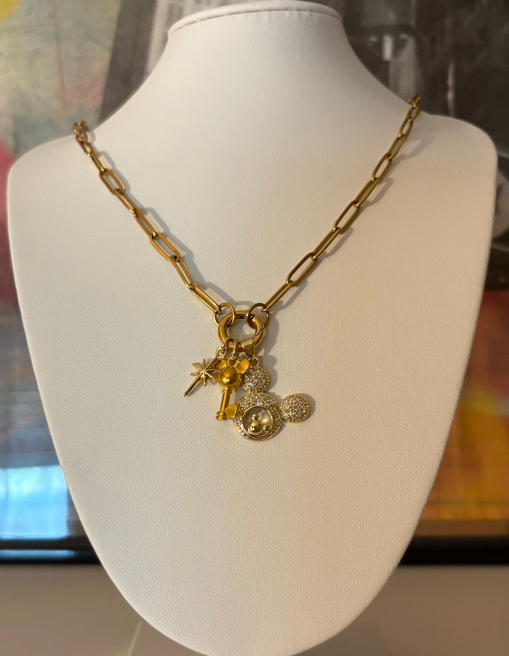 Gold 19" w/extender paperclip chain with assorted character charms.