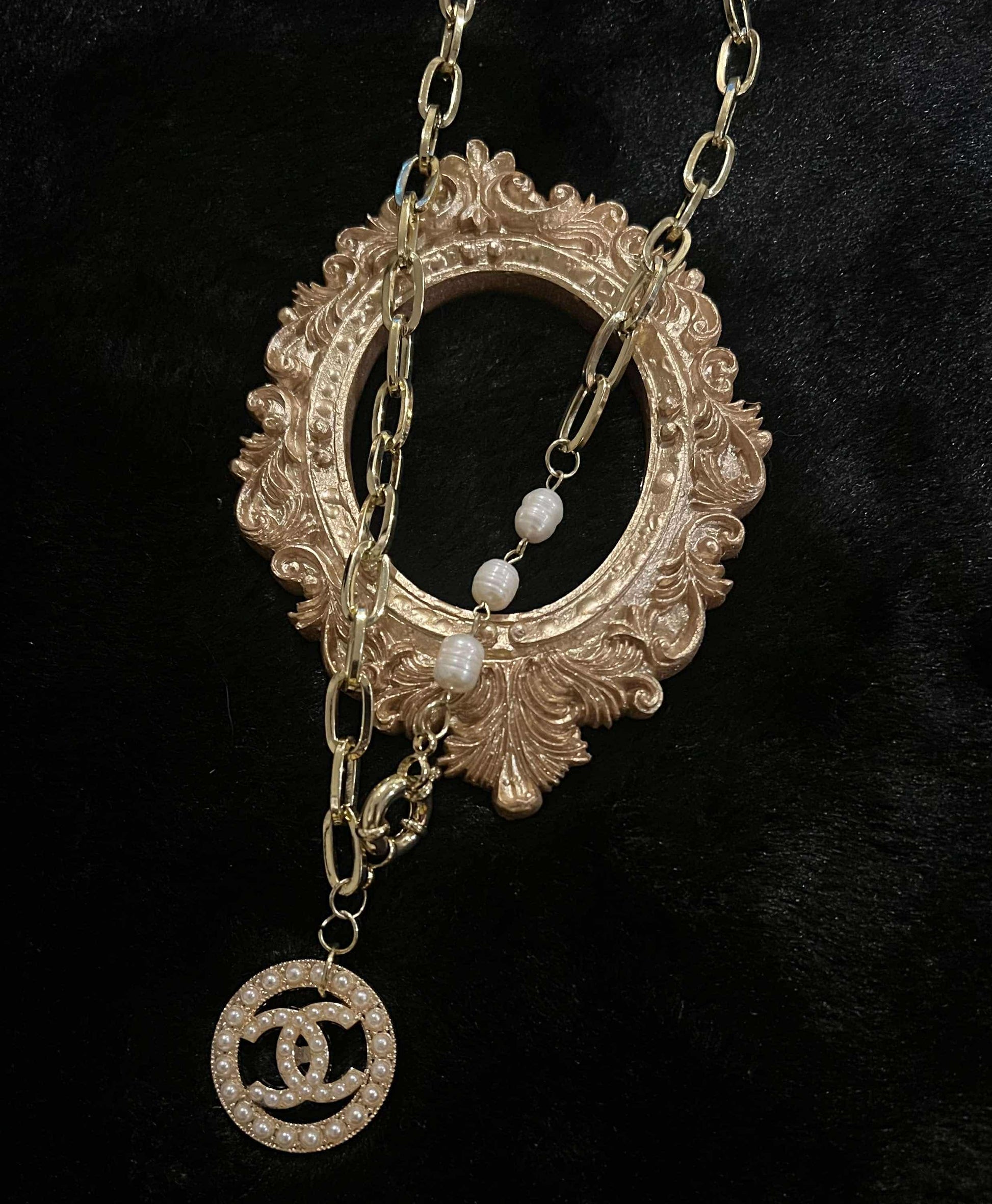 Authentic Chanel zipper pull paperclip and pearl necklace.