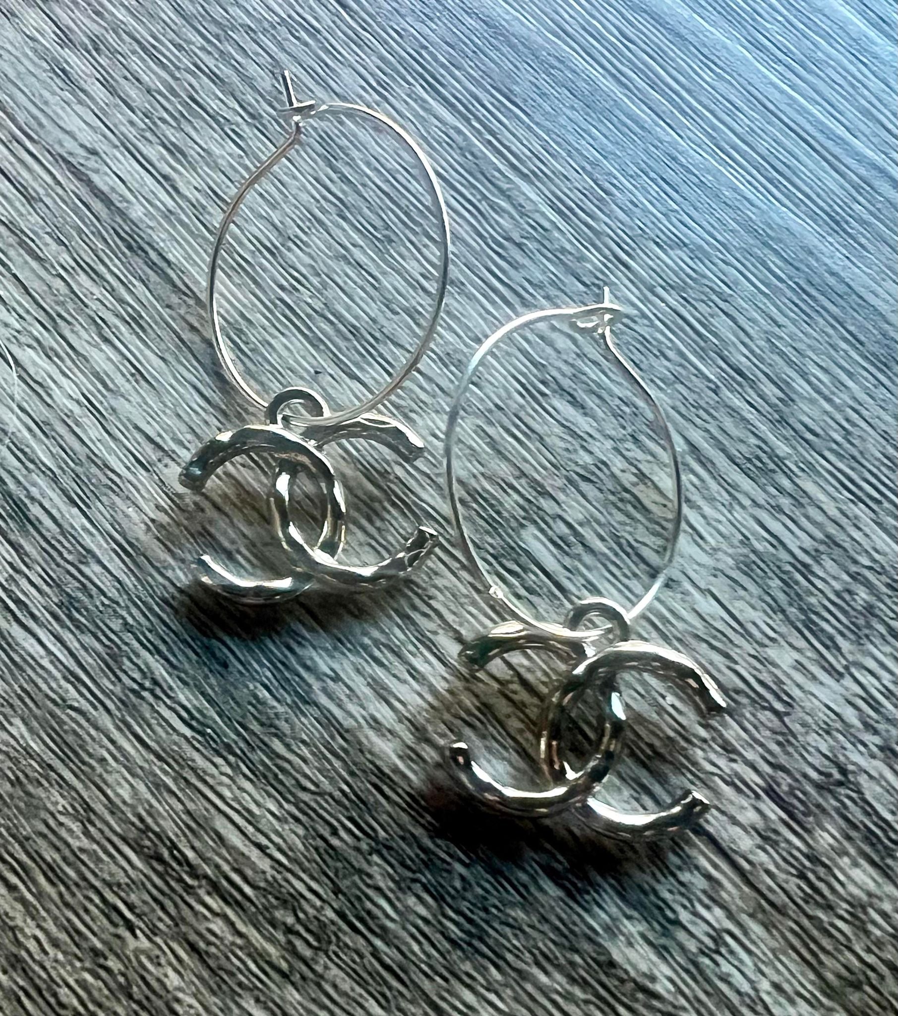 Sliver Chanel Logo hoops