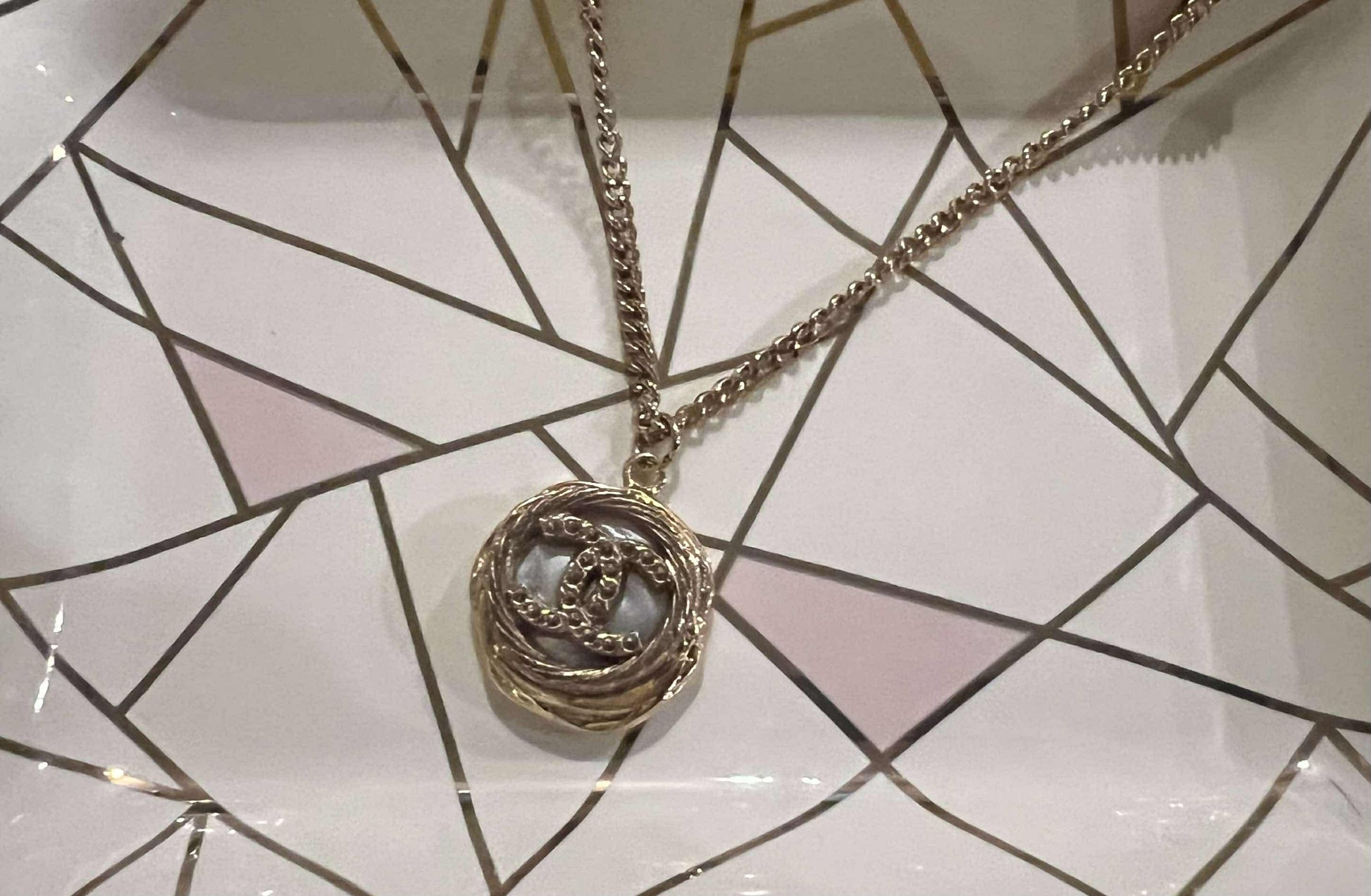 Twisted Gold with Pearl Inlay Chanel Zipper Pull Necklace